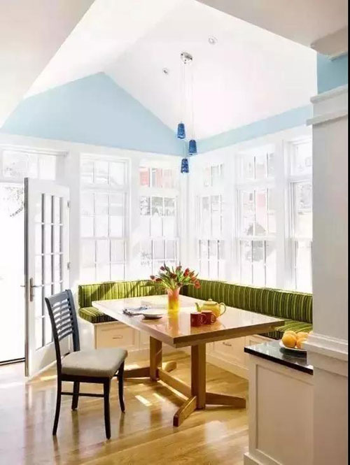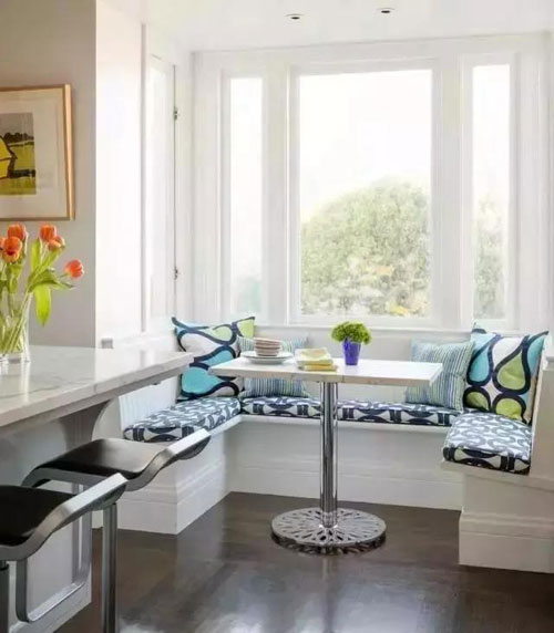 就拿時(shí)下正在流行的設(shè)計(jì)形式——卡座來說,它早已不是咖啡廳、甜品店、酒吧等公共餐飲區(qū)域的專屬,而是被巧妙地運(yùn)用到家庭裝修中,為空間平添一份浪漫的情調(diào),渲染出了無比愜意的就餐環(huán)境。