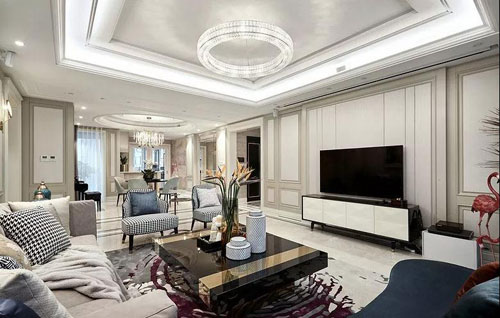 湘潭房產(chǎn)網(wǎng)訊    端莊優(yōu)雅的美式元素加入到一個寬敞的空間里,提升了空間的品質(zhì)和渲染空間休閑舒適的氛圍。柔和的色調(diào)貫徹整個空間,一進屋就感受到非常舒服的感覺。