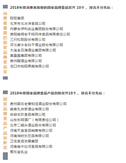 本次高峰論壇上,針對此前由“中國品牌食品論壇組委會”、“國家品牌食品周刊”發(fā)起,經廣大消費者票選評出的“2018最具社會責任國家品牌企業(yè)”、“2018年度消費者喜愛的國家品牌食品”、“2018年度國家品牌食品創(chuàng)新產品”、“2018中國食品行業(yè)年度人物”,舉行了頒獎儀式。