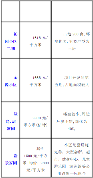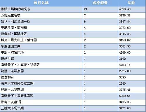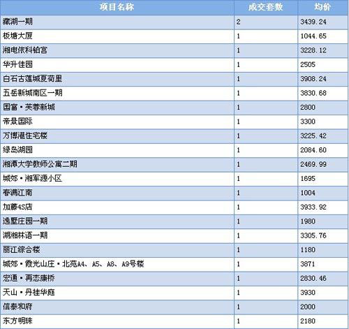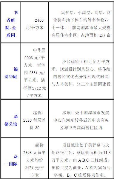 2011年6月湘潭部分樓盤成交均價