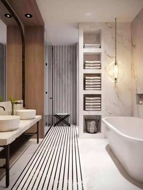 選墻地磚的時(shí)候,盡量選擇亮色系,增加室內(nèi)的明亮度。另外,盡量保證衛(wèi)生間均勻明亮的光線。在淋浴區(qū)、鏡子前最好加入輔助光源。
