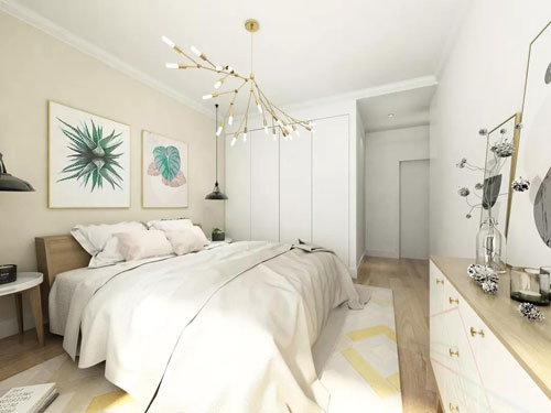 主臥簡單而又大方,既不會讓人覺得單調(diào),又會讓人感到舒適,使人在忙碌過后而感到疲憊的精神,在這樣溫和的環(huán)境下得到放松。
