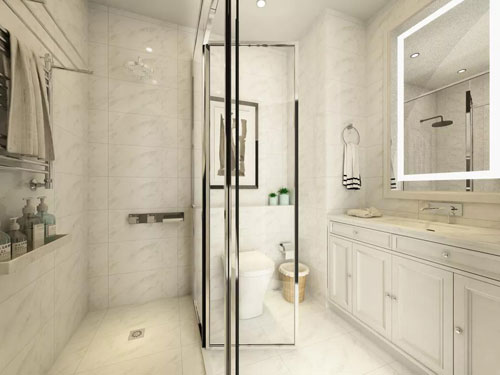 衛(wèi)生間是以白色為基調(diào),透明的玻璃使得整個空間看起來十分寬敞,簡潔而又明亮。