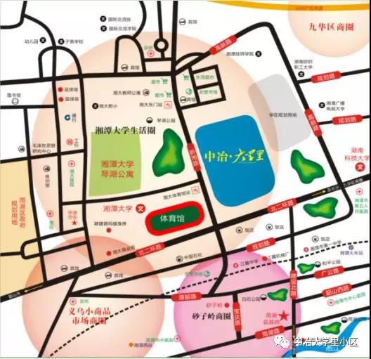湘大生活圈,沙子嶺商業(yè)圈、義務(wù)小商品商業(yè)街、九華商業(yè)圈形成眾星拱月之勢。