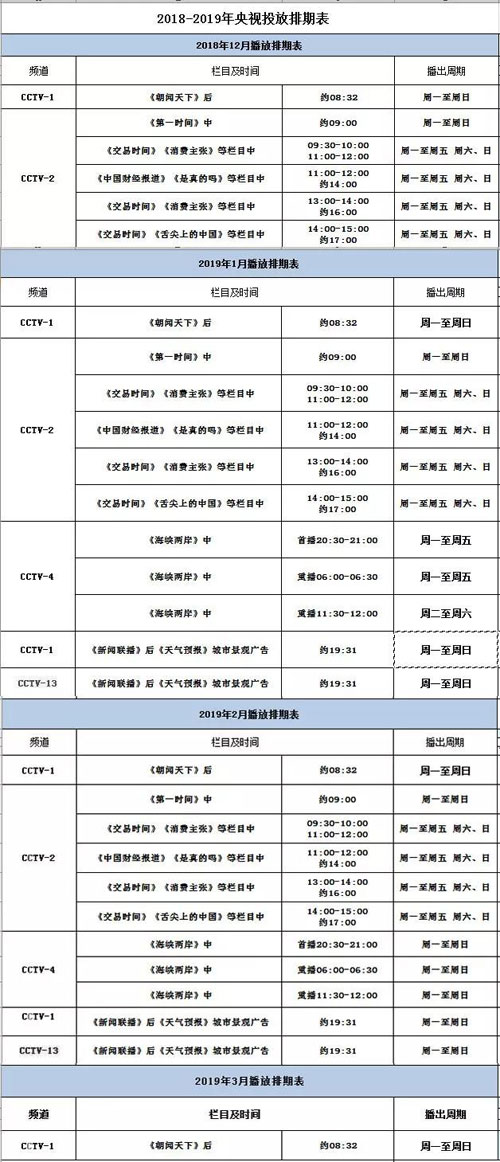 國家平臺成就世界商都,中國(中部)岳塘國際商貿(mào)城一次性登陸CCTV-1、CCTV-2、CCTV-4、CCTV-13四大央視頻道,且播出時間多為影響力最大、穩(wěn)定性最高的綜合新聞欄目,國家級電視臺的黃金時段中插廣告不僅能背書頂級品牌的傳播效應,快速提升品牌實力感和知名度,其傳播資源和價值可謂彌足珍貴。