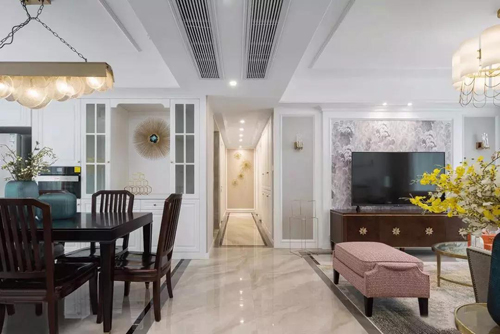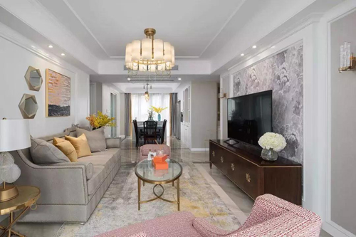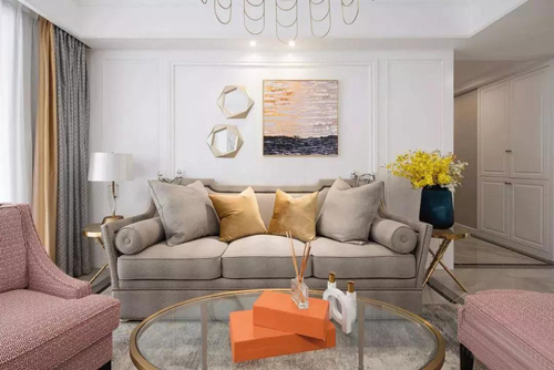 ▲ 客廳設(shè)計(jì)師采用了白色為主色調(diào),搭配暖色調(diào)的軟裝家具及配飾,給人一種溫馨舒適的感受。