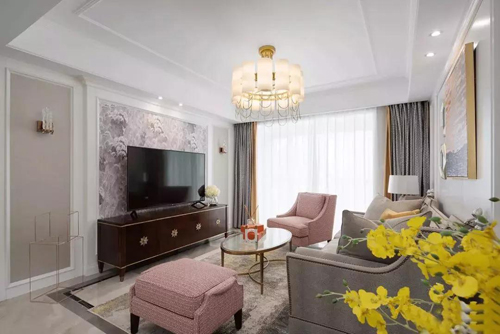 ▲ 無(wú)論是沙發(fā)背景墻還是電視背景墻,設(shè)計(jì)師都做了簡(jiǎn)約的線條造型變化。