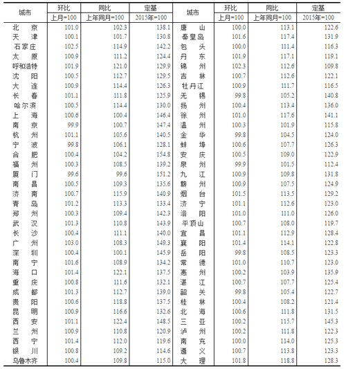 表5:15個熱點城市新建商品住宅銷售價格變動對比表