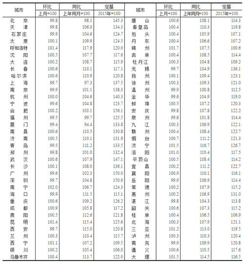 表1: 2018年12月70個大中城市新建商品住宅銷售價格指數(shù)