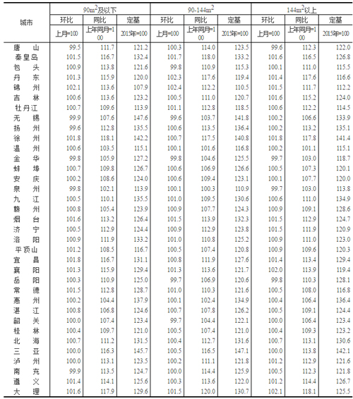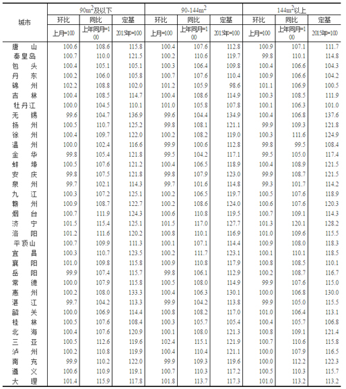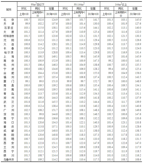 在12月份70個大中城市新建商品住宅銷售價格分類指數(shù)變動情況中,在90㎡以下的面積區(qū)間中,石家莊的新建商品住宅銷售價格環(huán)比上漲了3.1%,位列70城第一,西安的新建商品住宅銷售價格同比上漲了20.8%,位列70城第一;在90-144㎡的面積區(qū)間中,廣州的新建商品住宅銷售價格環(huán)比上漲了2.9%,位列70城第一,?诘男陆ㄉ唐纷≌N售價格同比上漲了22.1%,位列70城第一;在144㎡以上的面積區(qū)間中,廣州的新建商品住宅銷售價格環(huán)比上漲了3.3%,位列70城第一,?诘男陆ㄉ唐纷≌N售價格同比上漲了23.1%,位列70城第一。