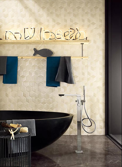 瑰麗流暢的紋樣,通過高超的上釉工藝,復(fù)原重現(xiàn)出那種曾經(jīng)的輝煌璀璨。經(jīng)特殊處理的磚面,時光打磨中,增添的一種現(xiàn)代時尚素雅。