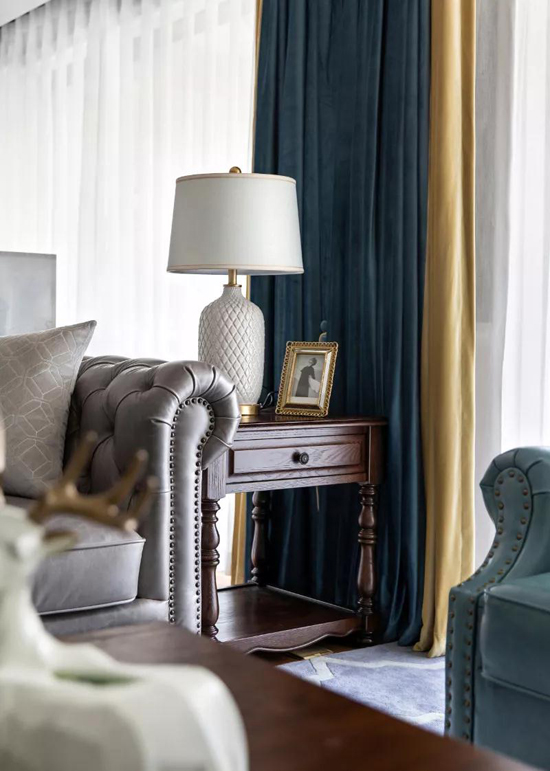 輕奢是一種態(tài)度,是一種對(duì)生活品質(zhì)的不妥協(xié)、不將就的底線。美式則是一種自由,一種文化底蘊(yùn)。當(dāng)淺冷色調(diào)的輕奢搭配上美式的舒適享受,成就了本案的格調(diào)和質(zhì)感:文化感、時(shí)尚感、情調(diào)感以及家的溫馨感。