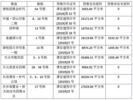截止5月24日,湘潭共有9個樓盤獲得預售許可證,其中預售總住宅面積181876.41平方米、非住宅總面積8193.74平方米。