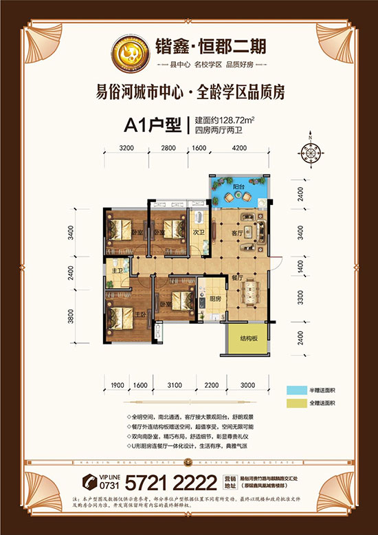 A1戶型| 建面約128.72㎡ 四房?jī)蓮d兩衛(wèi)
