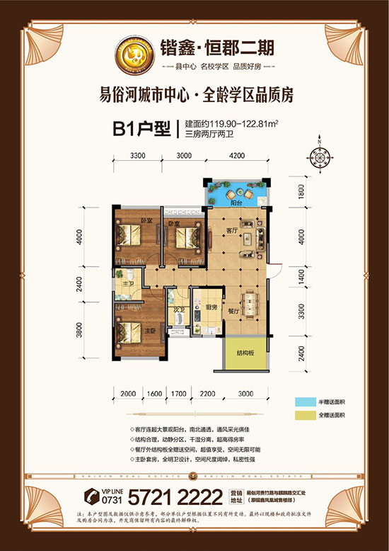 B1戶型| 建面約119.90-122.81㎡ 三房?jī)蓮d兩衛(wèi)