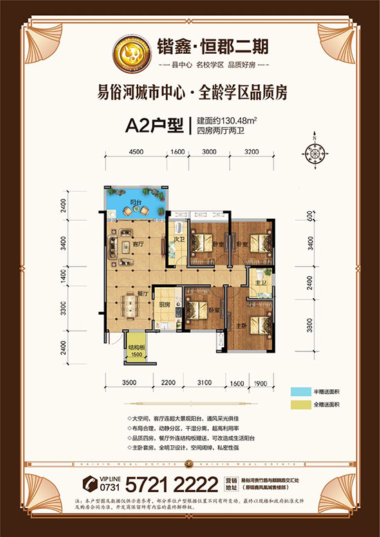 A2戶型| 建面約130.48㎡ 四房?jī)蓮d兩衛(wèi)