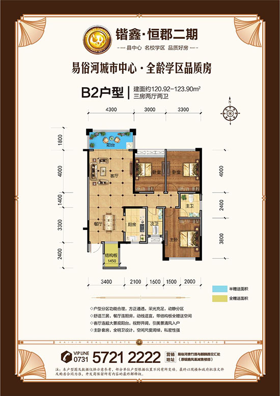 B2戶型| 建面約120.92-123.90㎡ 三房?jī)蓮d兩衛(wèi)