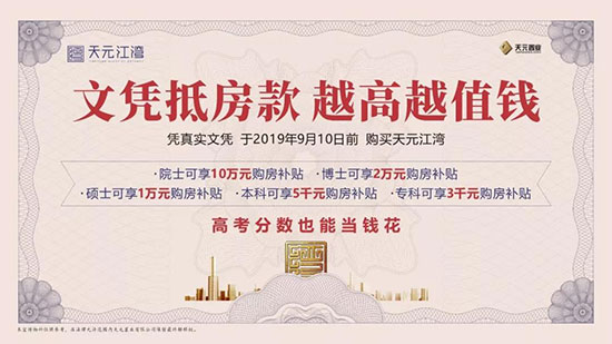 2019年9月10日前拿個文憑來湘潭【天元江灣】分分鐘幫你省下一筆巨款: