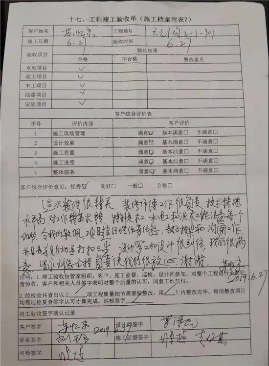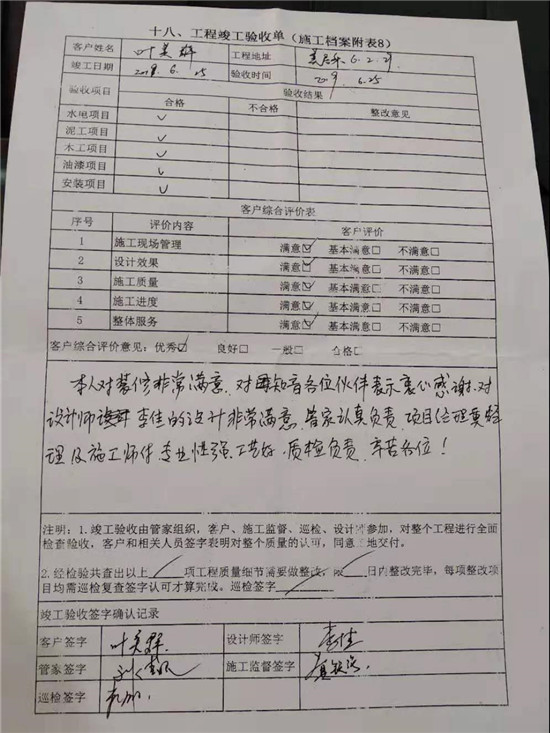 6月25日美居樂(lè)施工工地驗(yàn)收單