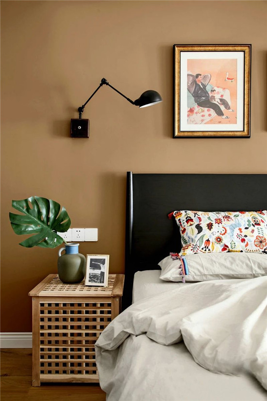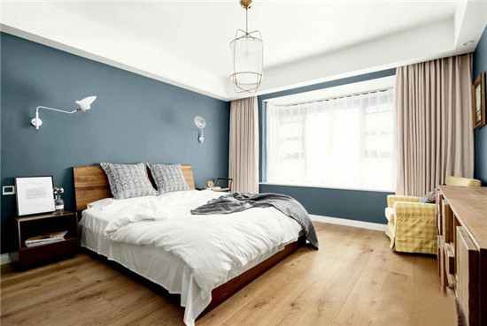 臥室是玩轉(zhuǎn)色彩漆,選用當(dāng)下流行的衣服色彩,走的是水粉中的高級灰色彩系列。