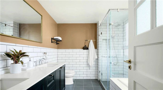 衛(wèi)生間用了防水乳膠漆和墻磚搭配,純黑色的浴室柜,和墻面形成一個強(qiáng)烈對比,這種歐美穿搭不知道你會不會覺得很棒呢。