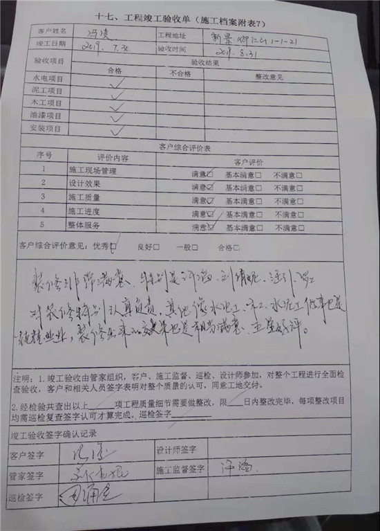 碧桂園幸福里竣工驗收表