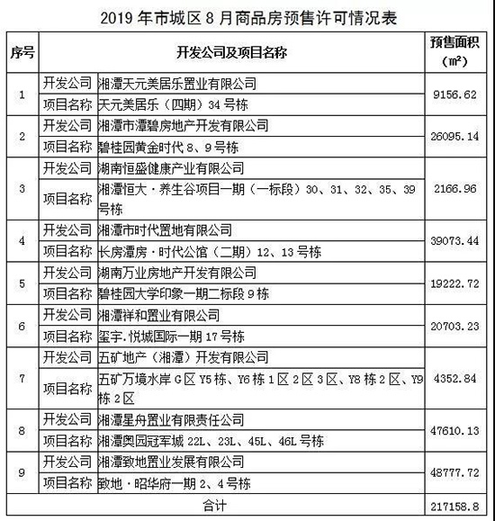 湘潭市2019年8月房地產(chǎn)市場交易情況報告