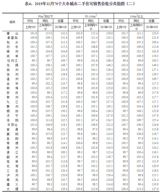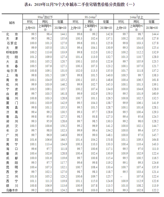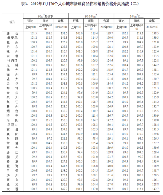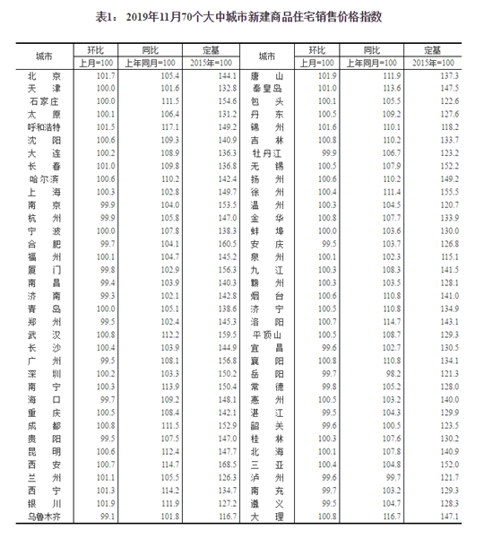 2019年11月份70個(gè)大中城市商品住宅銷售價(jià)格變動(dòng)情況