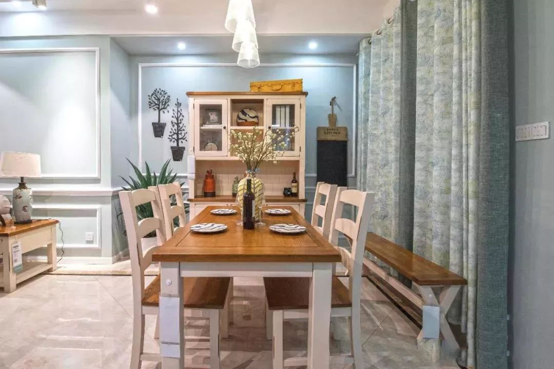 當(dāng)褐色的餐桌,褐黃色的柜子與帶有花紋的窗簾相遇,實用與美觀結(jié)合,不用過多言語,沒有過多裝飾,一切盡是這樣恰如其分,享受每頓佳肴。