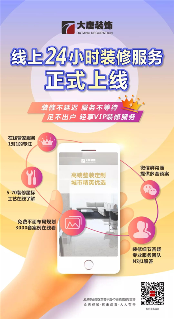 大唐裝飾線上24小時裝修服務(wù)已正式上線!疫情當(dāng)前,足不出戶,您的貼心裝修管家只需一鍵即可掌握!