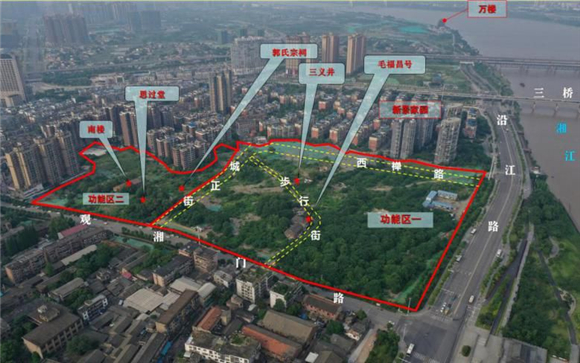 項(xiàng)目總用地面積195畝,其中可出讓凈用地面積約166.22畝,地塊位置:位于雨湖區(qū)沿江路以北、觀湘門路以東。地塊內(nèi)有市級文物“南樓、思過堂、三義井”等3處,不可移動文物“毛福昌號”及其他具有文物保護(hù)價(jià)值的建筑等5處。