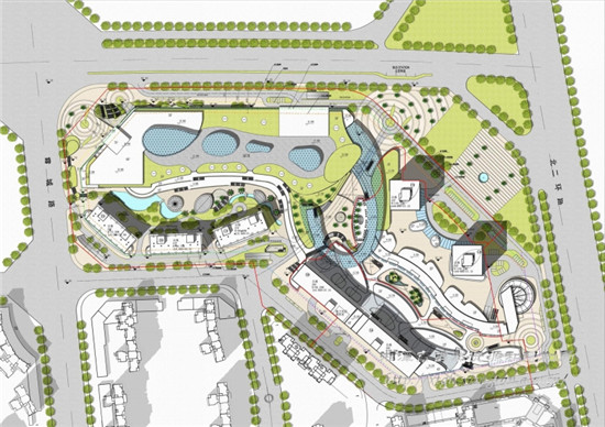 (2)縮小購物中心體量,地上建筑面積由195912㎡降至105946.36㎡,增加公共性花園廣場;