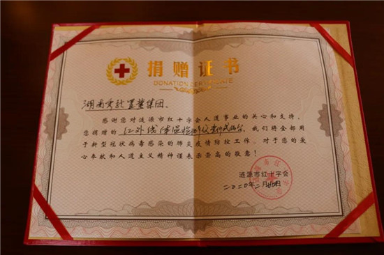 2月24日上午,漣源市委副書記、市長劉杰帶領(lǐng)市人大常委會主任梅國華,市委常委、市委辦主任謝永東,市教育局黨委書記、局長朱智華,市政府辦主任李付明,市紅十字會會長田紅暉蒞臨湖南潤和城實業(yè),接收潤和城集團(tuán)捐贈的1200把紅外線額溫槍。