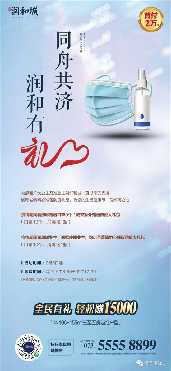 3月5日起,湘潭潤和城開始派發(fā)防疫用品活動,每天前來售樓部領(lǐng)取口罩的業(yè)主絡(luò)繹不絕,為潤和城點贊!