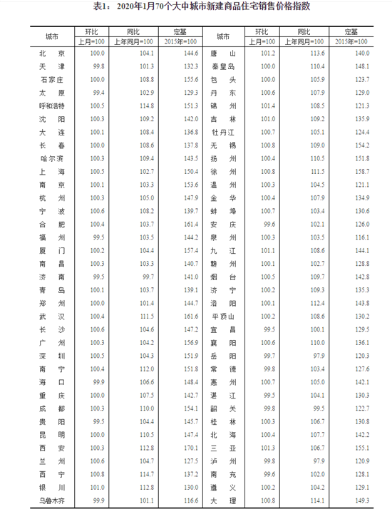 2020年1月份商品住宅銷售價(jià)格漲幅保持總體穩(wěn)定