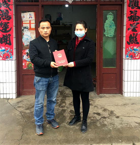 3月9日,湘潭縣自然資源局的工作人員將農(nóng)村宅基地房地一體不動(dòng)產(chǎn)權(quán)證分別送到了烏石鎮(zhèn)石峰村和茶恩寺鎮(zhèn)茶花村的兩戶村民家中。這也是自開展農(nóng)村宅基地和集體建設(shè)用地房地一體確權(quán)登記頒證工作以來湘潭市頒發(fā)的首批農(nóng)村宅基地不動(dòng)產(chǎn)權(quán)證。