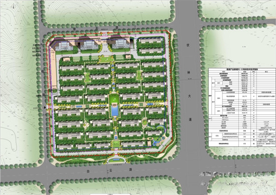 項(xiàng)目位于雨湖區(qū)伏林大道以西、白云路以北,主要經(jīng)濟(jì)技術(shù)指標(biāo)為:總用地69639.85平方米,總建筑面積79898.93平方米(計(jì)容面積71745.02平方米),容積率1.03,建筑密度23.15%,綠地率35.10%,商業(yè)占比4.91%。