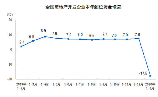 1—2月份,房地產開發(fā)企業(yè)到位資金20210億元,同比下降17.5%。其中,國內貸款4547億元,下降8.6%;利用外資12億元,下降77.2%;自籌資金6161億元,下降15.4%;定金及預收款5603億元,下降23.9%;個人按揭貸款3030億元,下降12.4%。