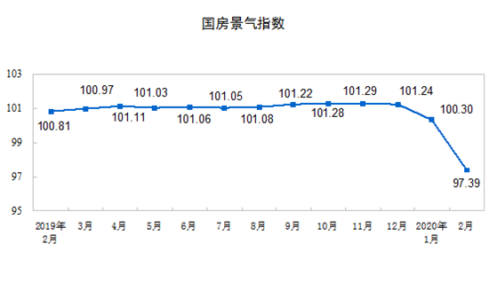2月份,房地產開發(fā)景氣指數(shù)(簡稱“國房景氣指數(shù)”)為97.39。