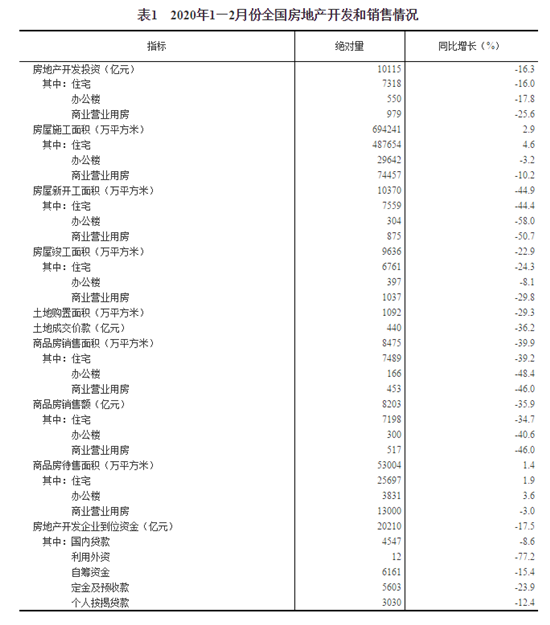 2月末,商品房待售面積53004萬平方米,比2019年末增加3184萬平方米。其中,住宅待售面積增加3224萬平方米,辦公樓待售面積增加31萬平方米,商業(yè)營業(yè)用房待售面積減少282萬平方米。