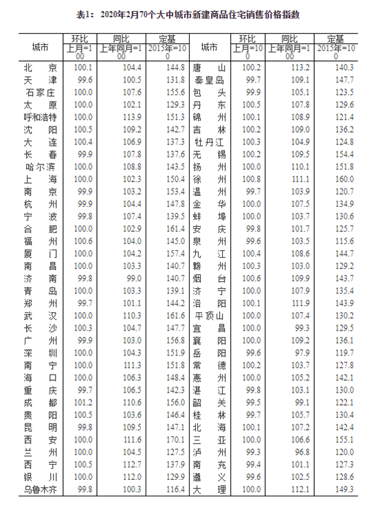 2020年2月份商品住宅銷售價(jià)格漲幅穩(wěn)中有落