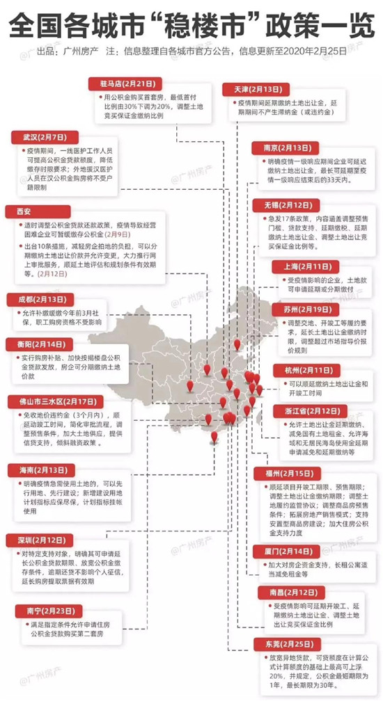 據(jù)不完全統(tǒng)計,截止到3月1日已有20多個城市接連出臺應(yīng)對疫情與保障樓市平穩(wěn)運行的新政。