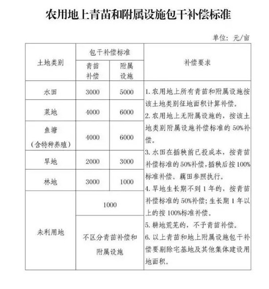 青苗及地上附屬設(shè)施補(bǔ)償按