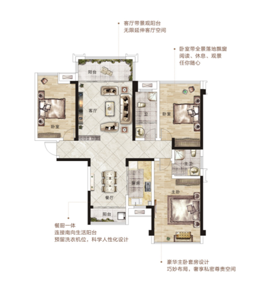 餐廚一體,南向生活陽臺預(yù)留洗衣機位
