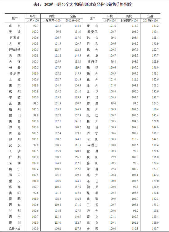 ——國(guó)家統(tǒng)計(jì)局城市司首席統(tǒng)計(jì)師孔鵬解讀2020年4月份商品住宅銷售價(jià)格變動(dòng)情況統(tǒng)計(jì)數(shù)據(jù)