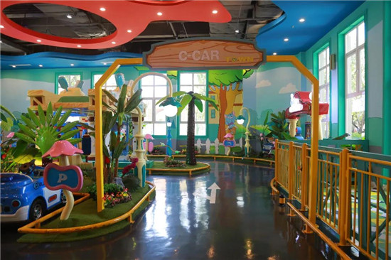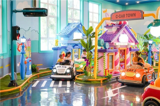 第一層有網(wǎng)紅淘氣堡、娃娃機、駕駛學校等項目