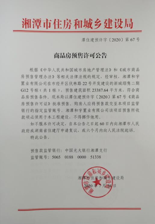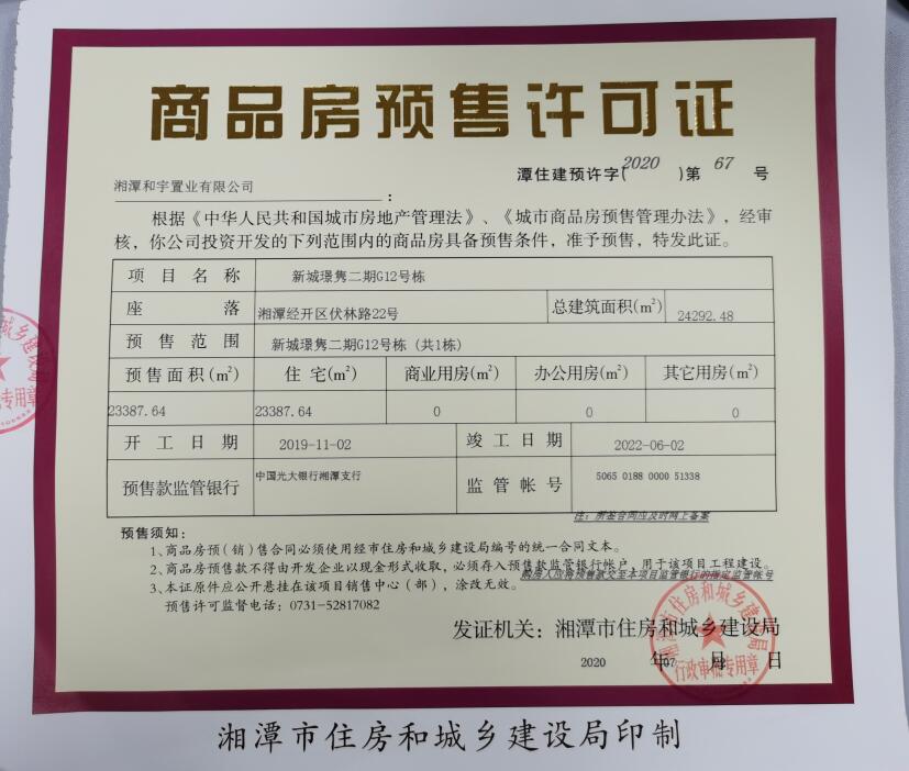 關(guān)于新城璟雋二期G12號(hào)棟(共1棟)預(yù)售許可公告
