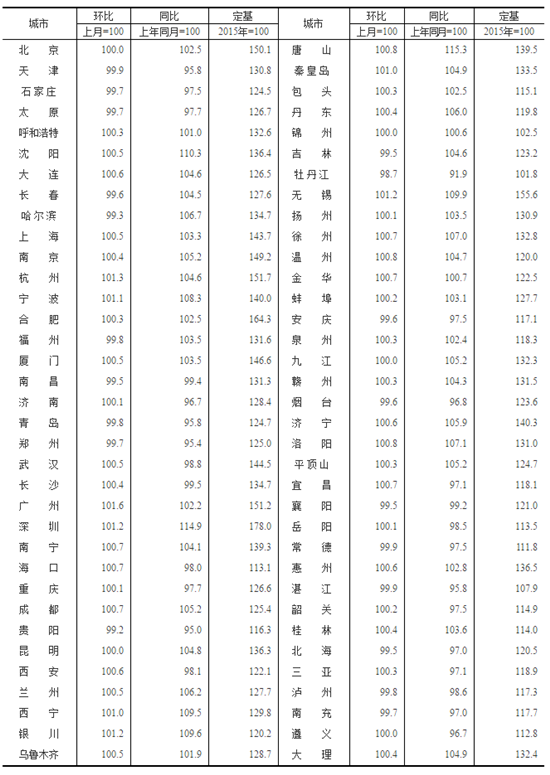 表3:2020年7月70個(gè)大中城市新建商品住宅銷(xiāo)售價(jià)格分類指數(shù)(一)