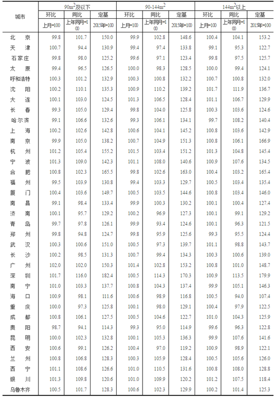 3.價(jià)格指數(shù)的計(jì)算方法詳見(jiàn)中國(guó)統(tǒng)計(jì)信息網(wǎng)《住宅銷(xiāo)售價(jià)格統(tǒng)計(jì)調(diào)查方案》。