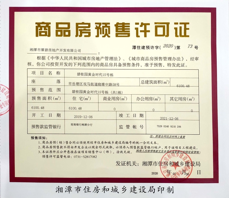 關(guān)于碧桂園黃金時(shí)代15號(hào)棟(共1棟)預(yù)售許可公告